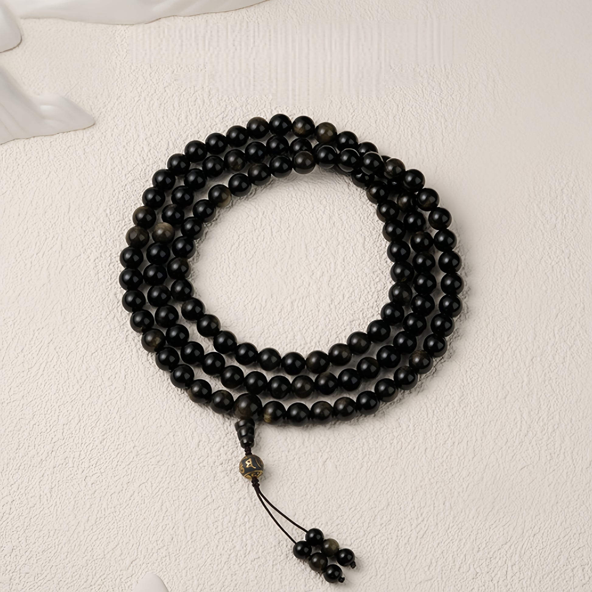 Potalapalace Accessories Handmade Natural Black Obsidian 108 Bead Mala Bracelet