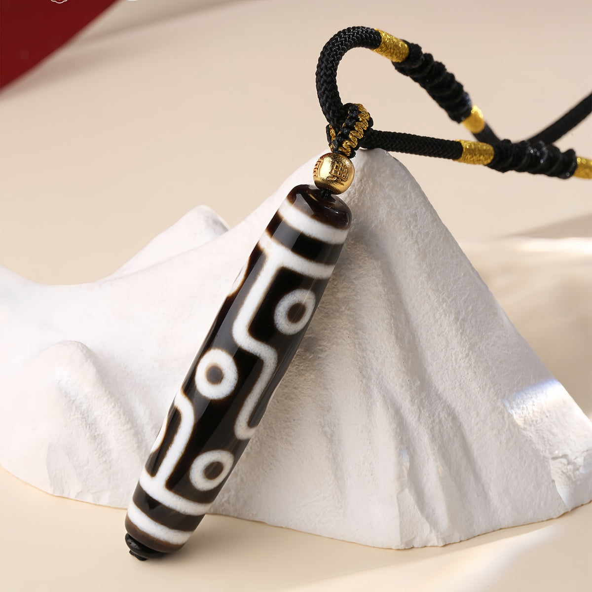 This handcrafted Tibetan Dzi bead necklace carries ancient wisdom, bringing inner peace and relaxation. It is designed to offer spiritual protection and attract good fortune. Each bead is meticulously crafted with a unique and intricate pattern, featuring a dominant red color symbolizing harmony, balance, and positive energy.