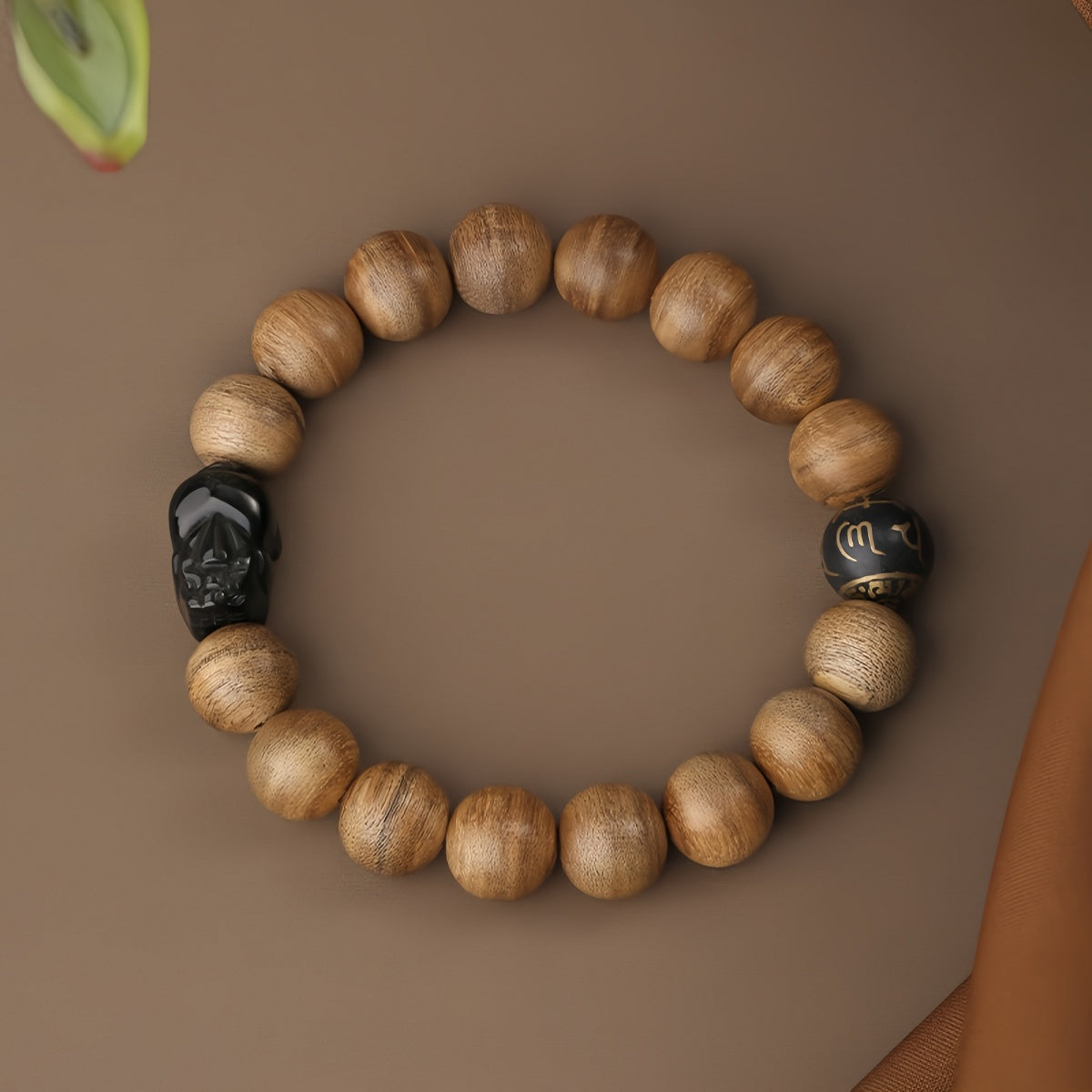沉香木虎牙貔貅真言手链