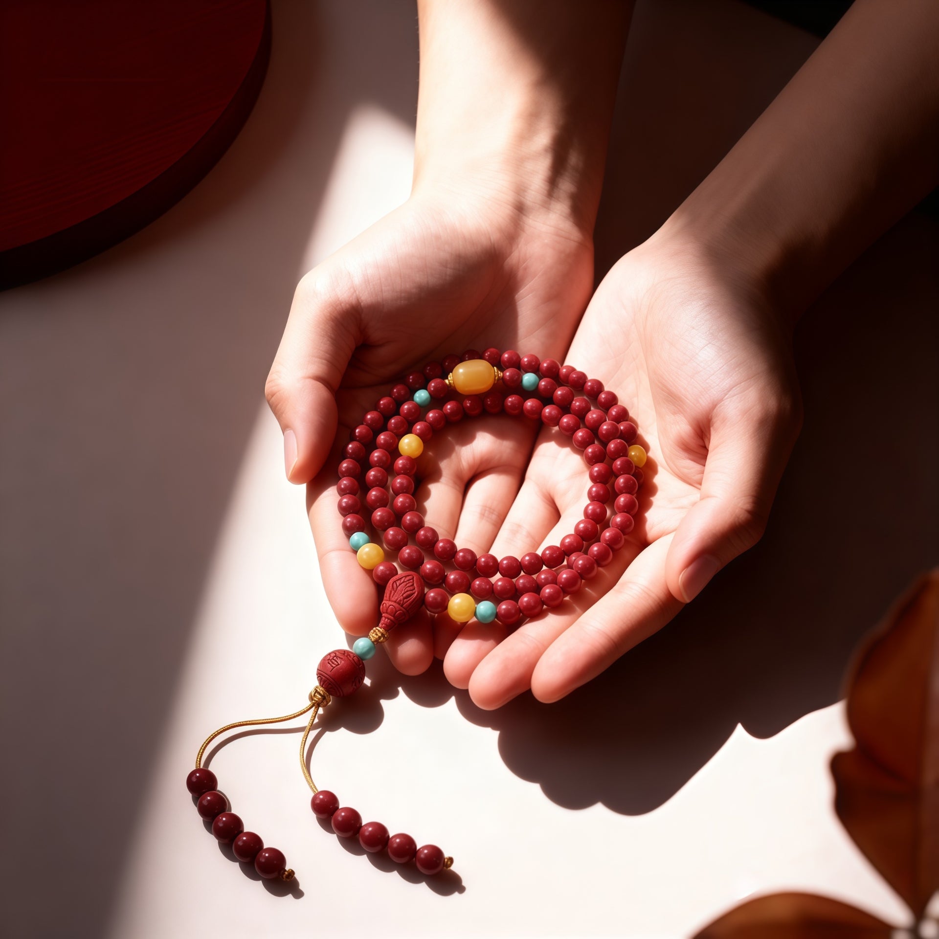 正确佩戴顺序:先护肤/喷香水 → 等干透 → 再佩戴佛珠。