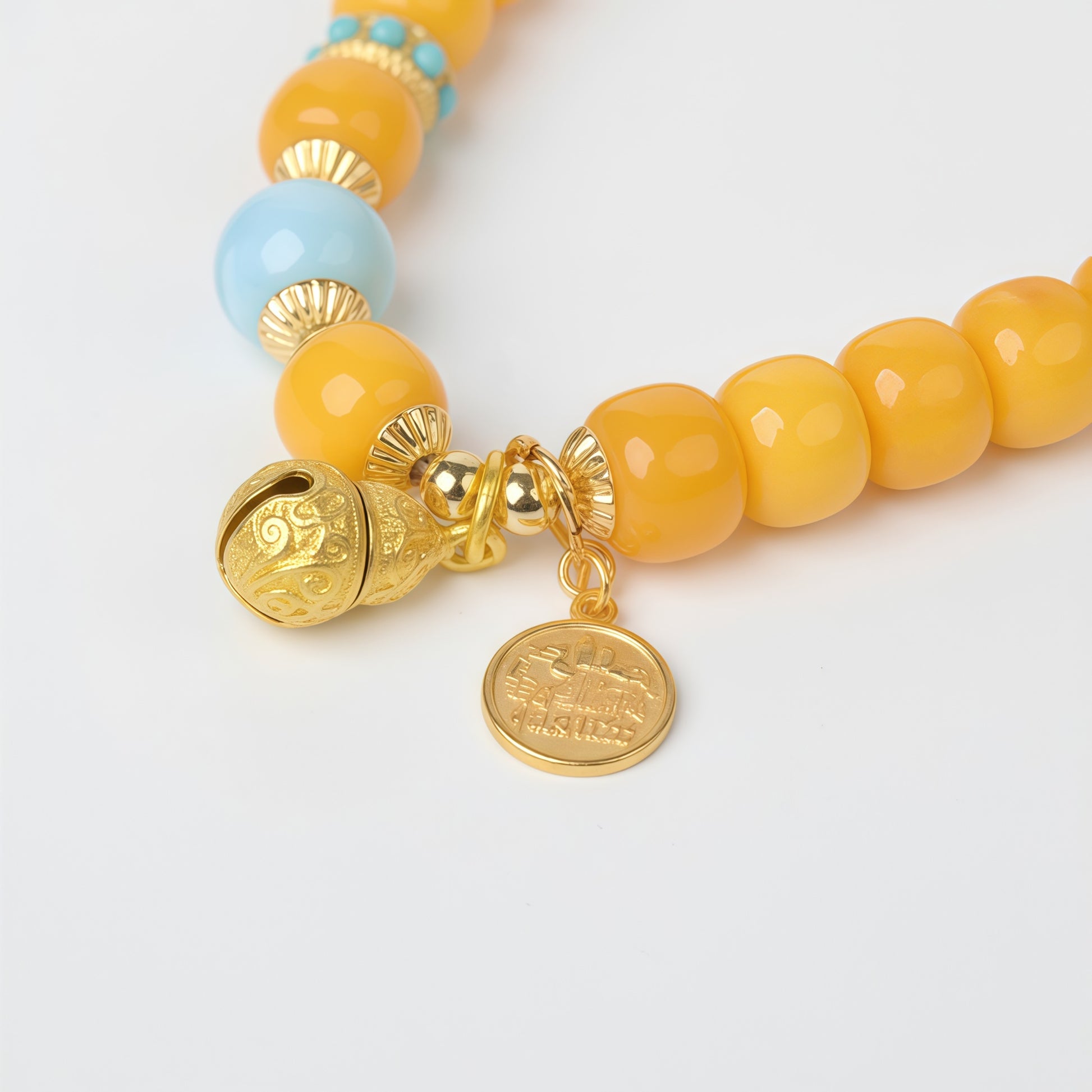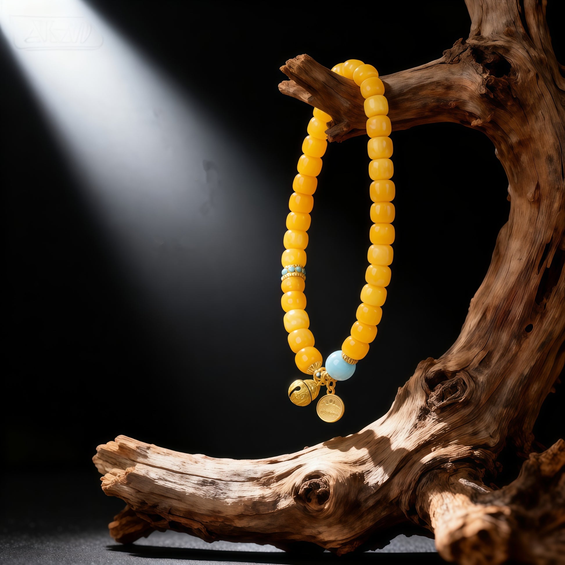 Potalapalace饰品手工天然琥珀和白纹石手链