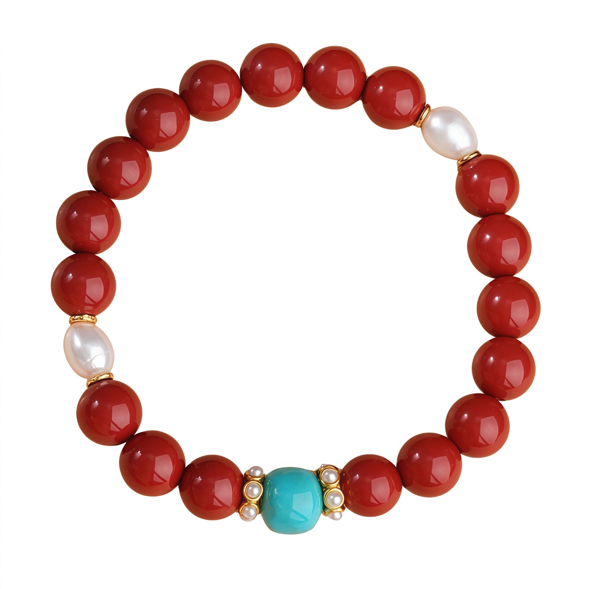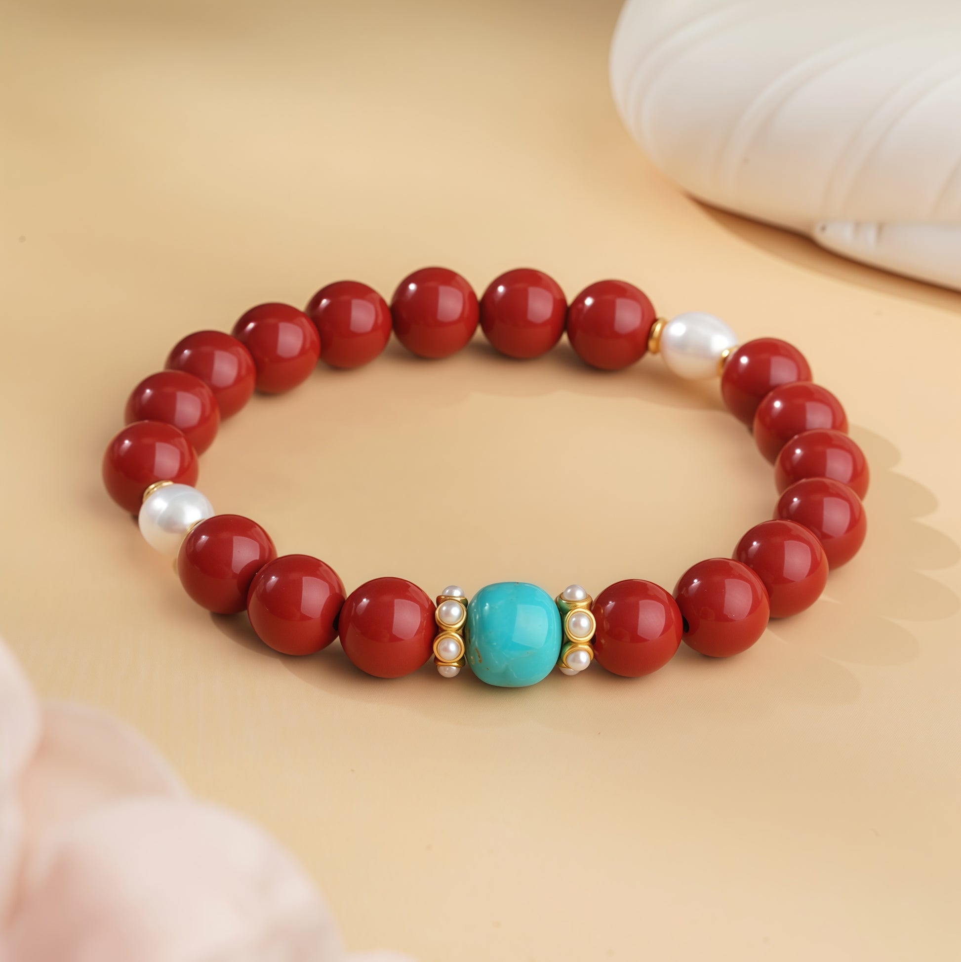 Potalapalace饰品手工天然淡水珍珠手链配红色丝绸纱