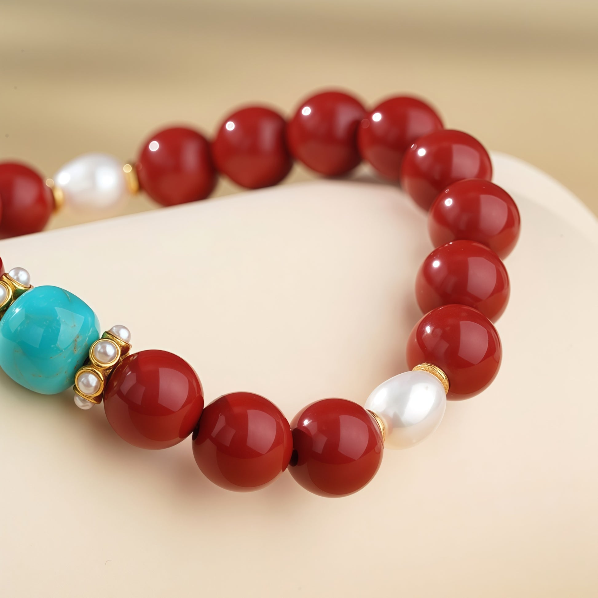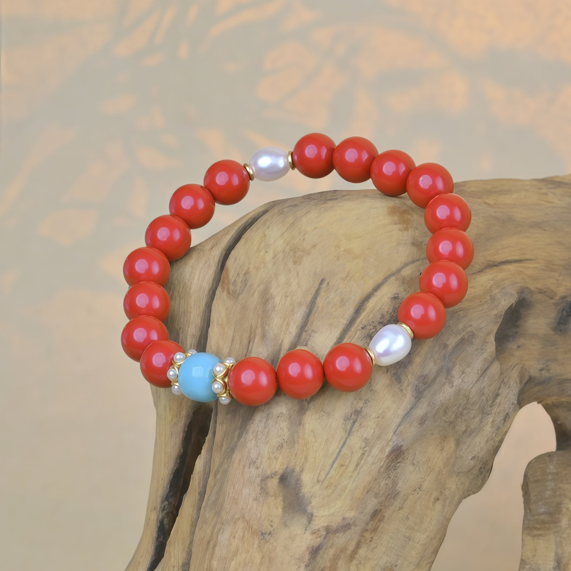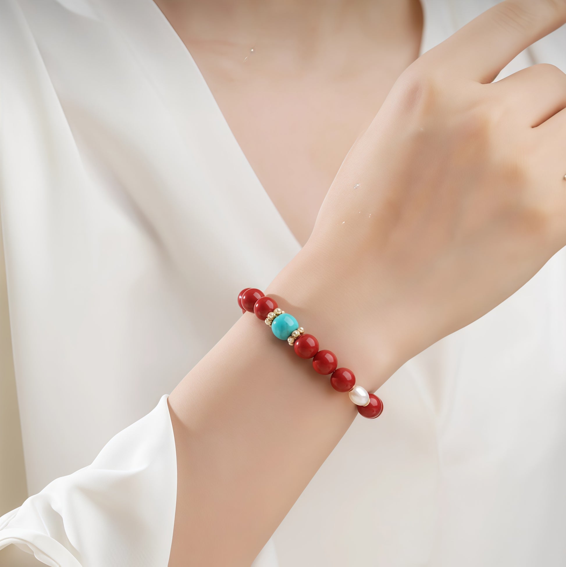 这款手工制作的藏式手链蕴含着古老的智慧,旨在为您带来精神上的庇佑和好运。手链由精心制作的珠子串成,每颗珠子都饰有独特而精美的红白图案,象征着和谐、平衡和积极的能量。