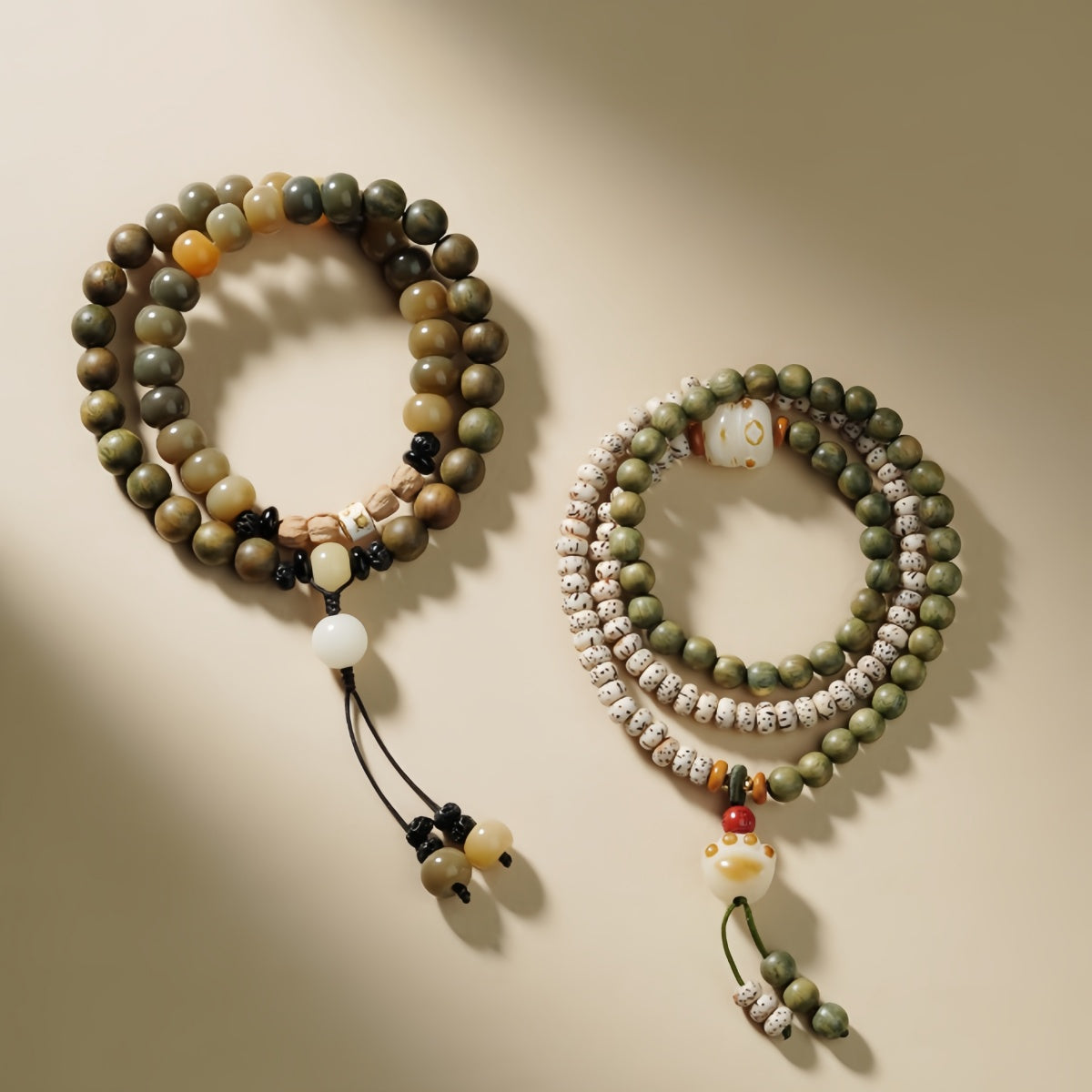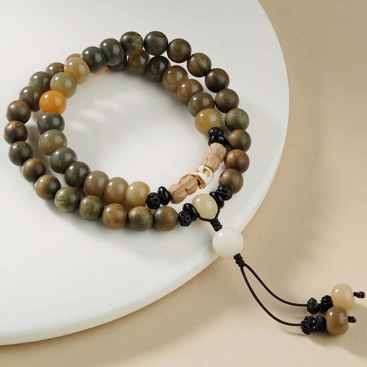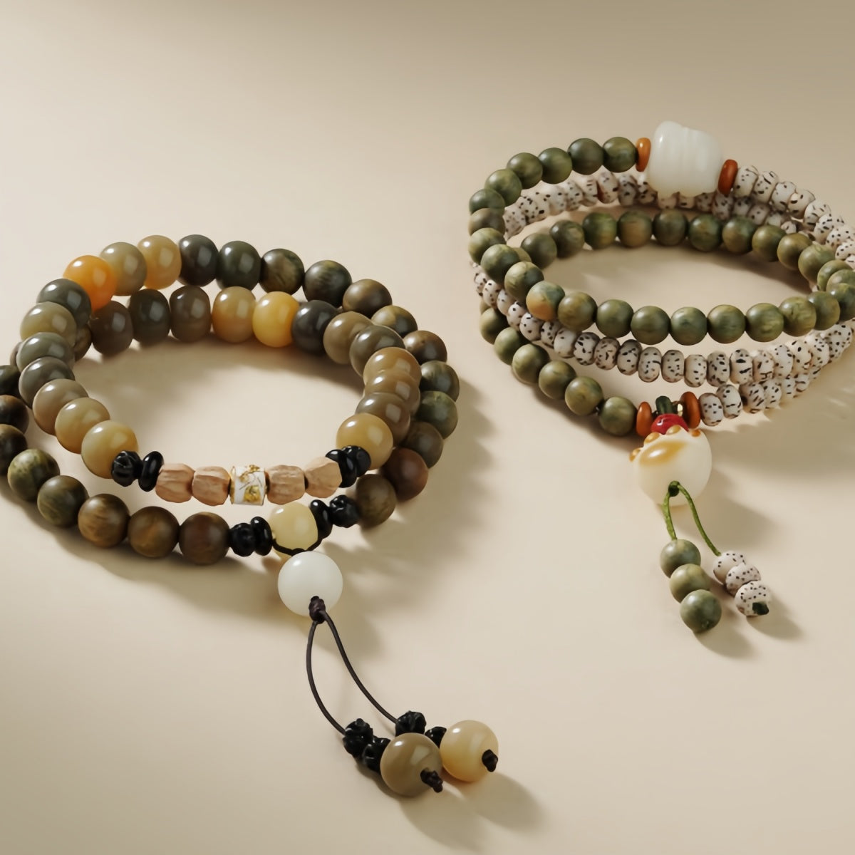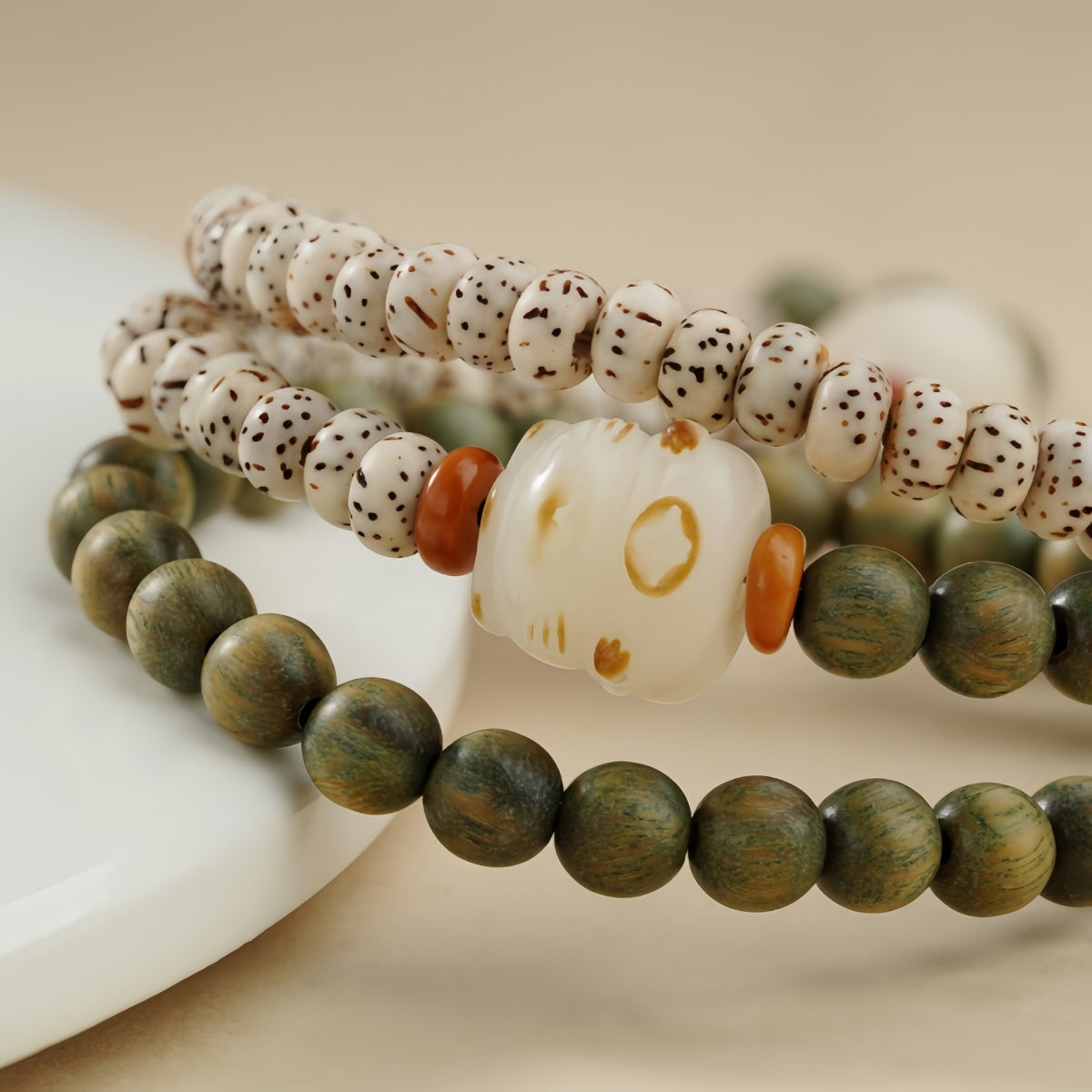 Potalapalace饰品 手工天然绿色檀香菩提子双圈手链