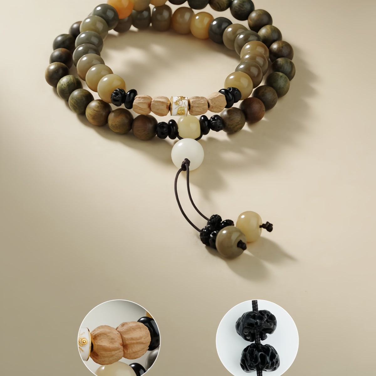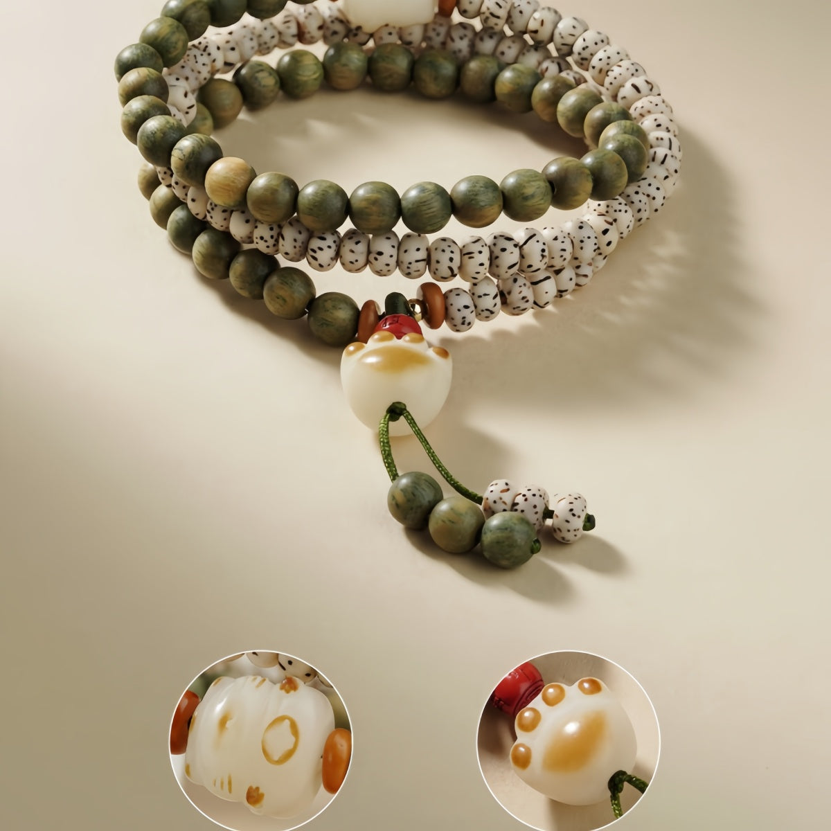 这款手工制作的藏式手链蕴含着古老的智慧,旨在为您带来精神上的庇佑和好运。手链由精心制作的珠子串成,每颗珠子都饰有独特而精美的红白图案,象征着和谐、平衡和积极的能量。